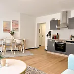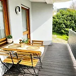 この寝室1室のアパートには設備の整った台所が備わります 55m²のJupas - Premium Apartments Trierは、フランクフルト・ハーン空港から70キロメートルほどの距離にあります。 この宿泊施設には、庭園の景色を望むテラスが備わります。